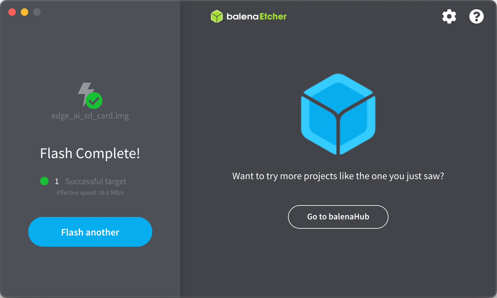 Click Flash!. If you receive a warning concerning the size of the microSD card, ensure that you have inserted the proper microSD and also selected the proper device, then click, Yes, I’m sure to flash the board. The flashing and verification process may take 10-20 minutes, depending on your system.